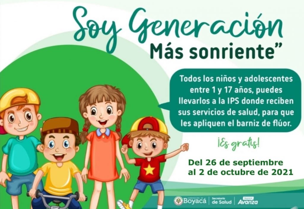 La Secretaría de Salud de Boyacá tiene programado realizar entre el 26 de septiembre y el 2 de octubre, la Tercera Jornada Nacional Soy Generación Más Sonriente, para intensificar las acciones de gestión de la salud pública, colectivas e individuales, con miras a la reducción de las enfermedades bucales, especialmente caries y enfermedad periodontal.