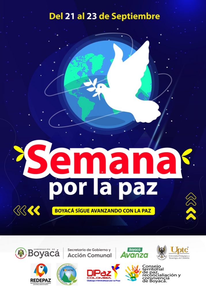 La apertura de la Semana por la Paz será el martes, a las 3:00 de la tarde, en el auditorio Eduardo Caballero Calderón de Tunja. La actividad será transmitida por el Facebook Live de la Secretaría de Gobierno de Boyacá.