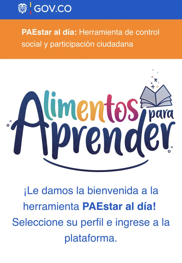 Uno de los principales avances de esta herramienta es la página Web y App PAEstar al día (www.paestaraldia.gov.co) , que permitirá a líderes del PAE de las Entidades Territoriales Certificadas en Educación, rectores, docentes y directivos docentes de los establecimientos educativos oficiales del país y al personal manipulador de alimentos acceder con perfiles de usuario y contraseña para hacer seguimiento en tiempo real al avance del Programa.