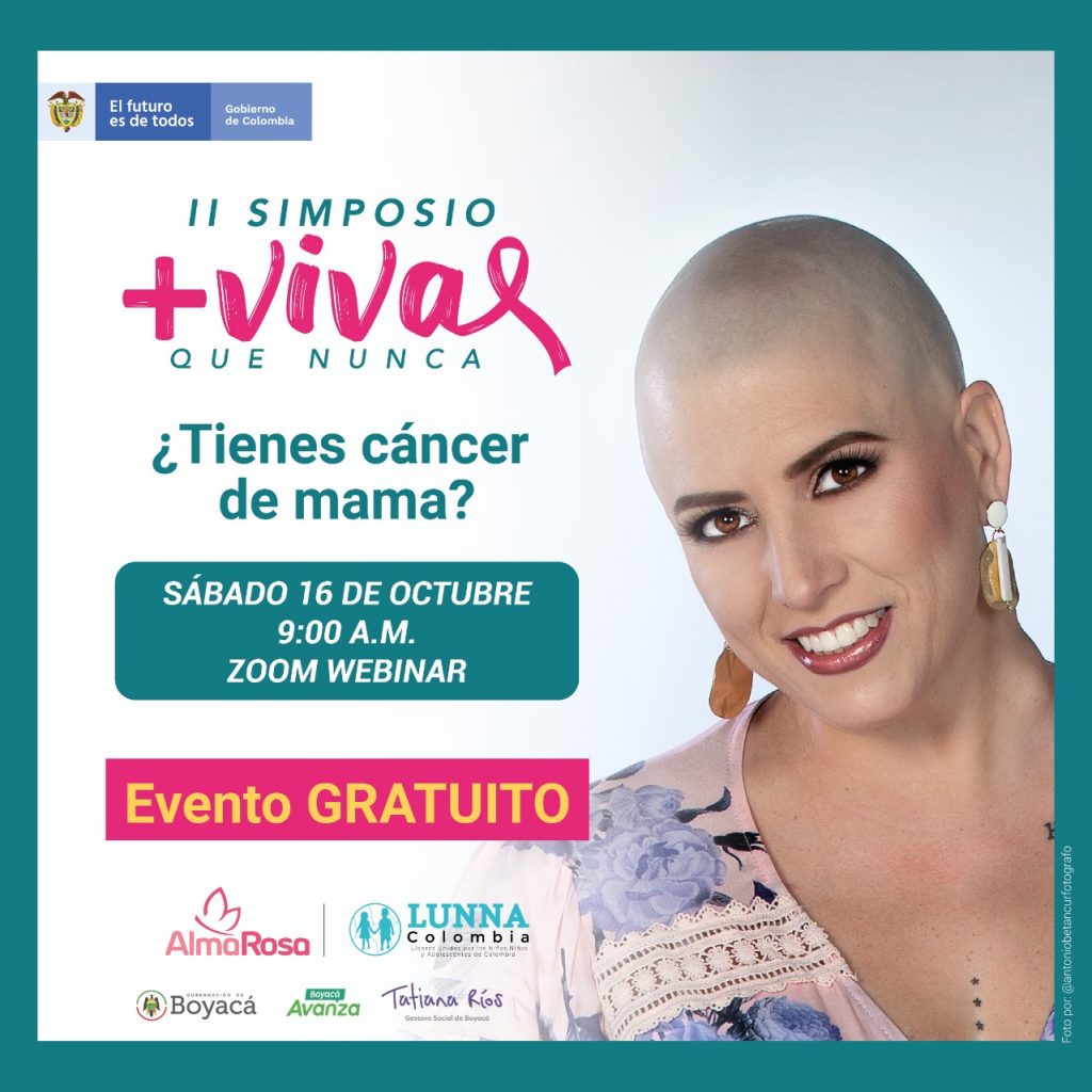 “El II Simposio Más Viva que Nunca es un evento online gratuito, que es promovido por la Fundación Alma Rosa y LUNNA Colombia, que tiene por objetivo resolver las inquietudes de las mujeres y sus familiares sobre el cáncer de mama, ya que muchas preguntas o temas relacionados con esta enfermedad no se alcanzan a resolver en una cita en el consultorio médico”, indicó Tatiana Ríos, gestora social de Boyacá.