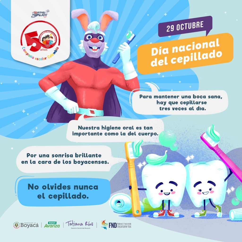 En esta oportunidad, desde la gestión social del departamento, que lidera Tatiana Ríos, junto a la Federación Nacional de Departamentos y Colgate, conmemorarán el Día Nacional del Cepillado el próximo viernes 29 de octubre, en la Institución Educativa Técnica Pijaos del municipio de Cucaita.