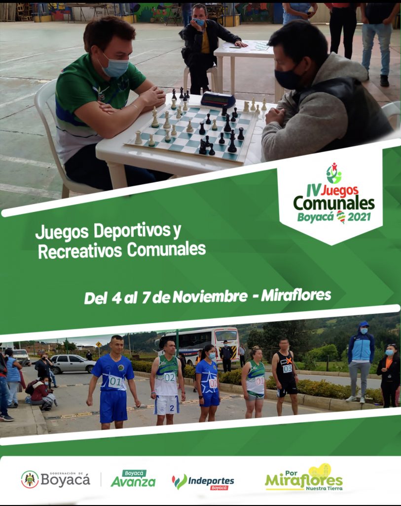 Con 10 disciplinas deportivas se realizará la Fase Final Departamental de los IV Juegos Deportivos y Recreativos Comunales de Boyacá 2021, evento que es apoyado por Indeportes Boyacá, en cabeza del gerente Fabio Enrique Parra, en articulación con la Gobernación de Boyacá y la Alcaldía de Miraflores; estas justas deportivas se desarrollarán del 4 al 7 de noviembre en Miraflores, Boyacá.