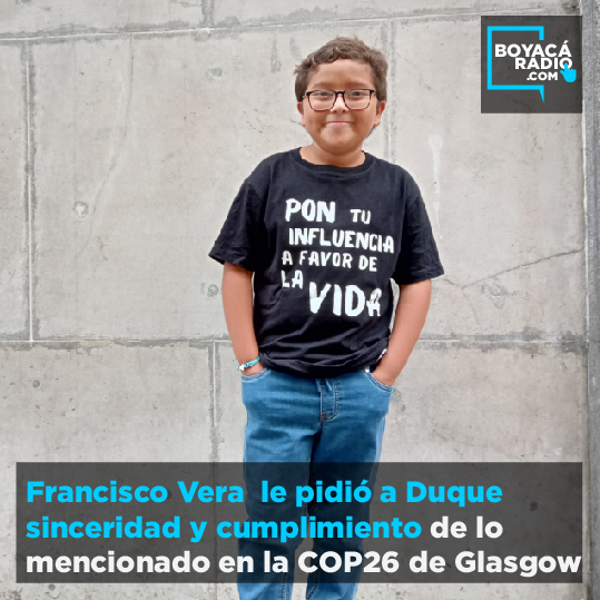 “Me he encontrado con varios presidentes del mundo, pero quisiera hablar tan solo con el mío para que escuche a los jóvenes. Quiero decirle (al presidente Duque) que sea más comprometido, sincero, responsable con los compromisos climáticos de Colombia. Que dé un ejemplo real, no como el que se ha dicho que está dando, al mundo y a Latinoamérica en general”, dijo Francisco Vera.