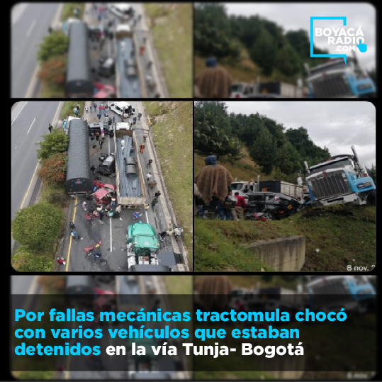Por fallas mecánicas tractomula chocó con vehículos que estaban detenidos en la vía Tunja- Bogotá