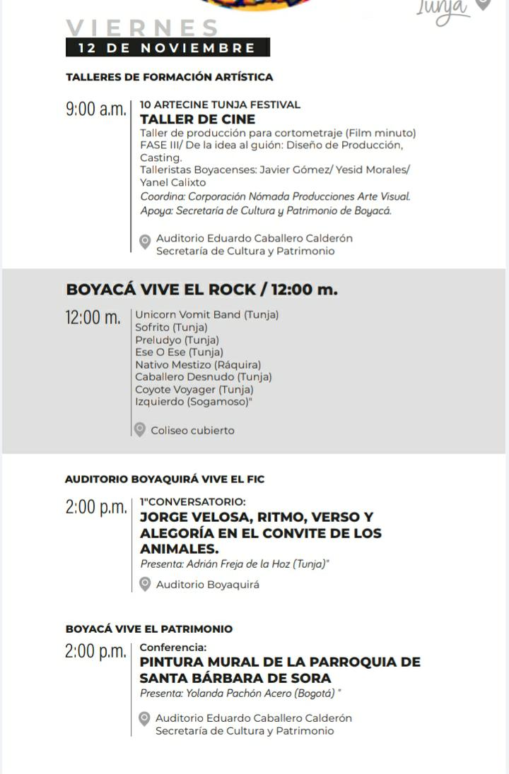 Programación del FIC para este 12 de noviembre
