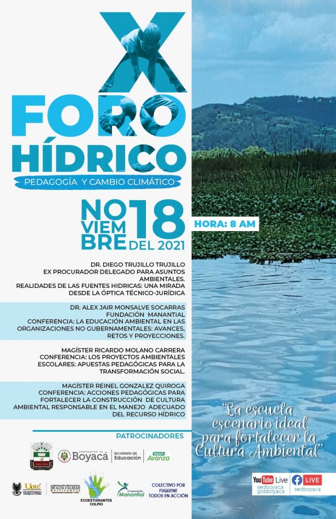 El X Foro Hídrico se transmitirá por Facebook de la Secretaría de Educación y YouTube de la Gobernación de Boyacá y la Secretaría de Educación de Boyacá.