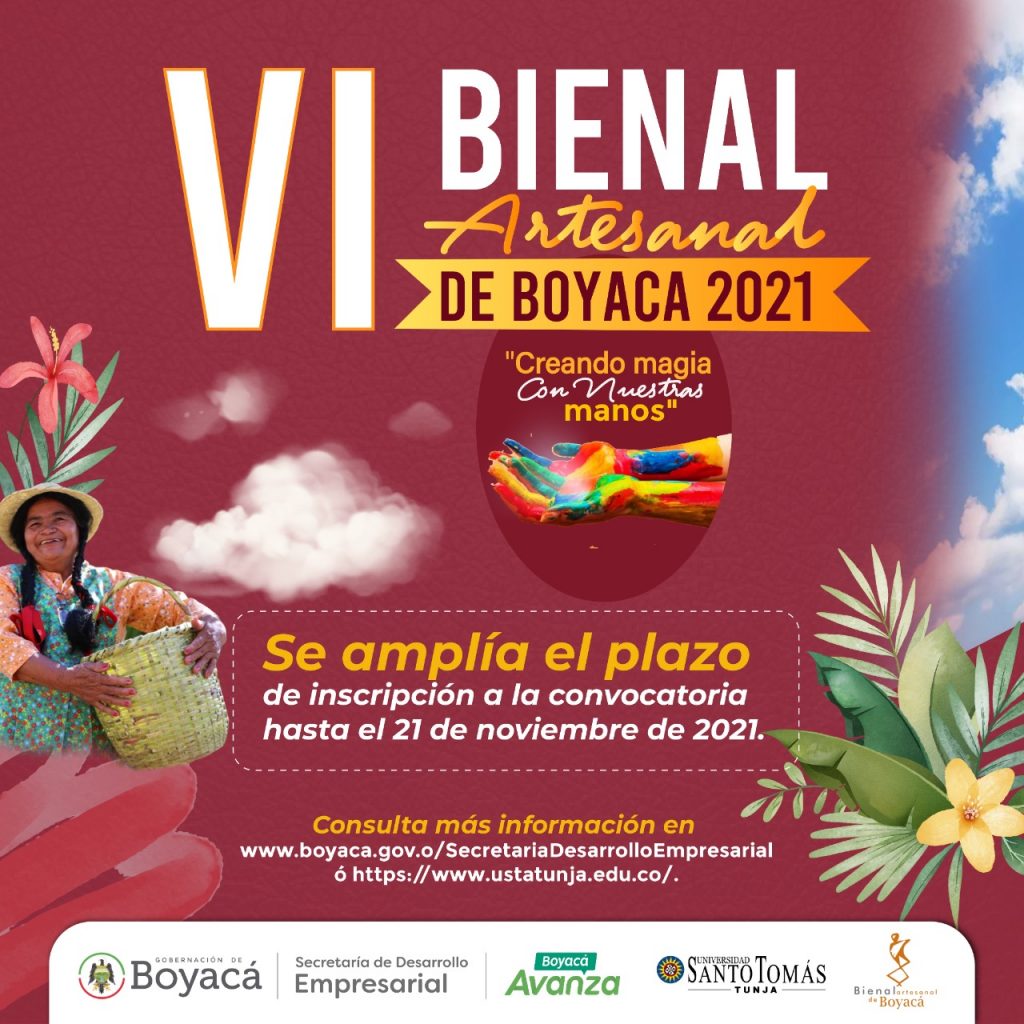 La Secretaría de Desarrollo Empresarial de Boyacá, el programa Artesanías de Boyacá y la Universidad Santo Tomás Seccional Tunja se permiten informar a los artesanos interesados en participar en la convocatoria a la VI Bienal Artesanal, que fueron efectuados algunos cambios.