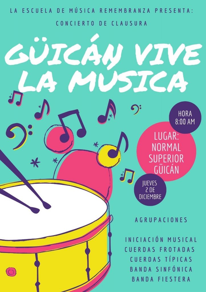 Como muestra de su trabajo, la Escuela de Música Remembranza dará a conocer los resultados alcanzados durante este 2021. Para tal fin, se ofrecerá el concierto “Güicán Vive la Música”.