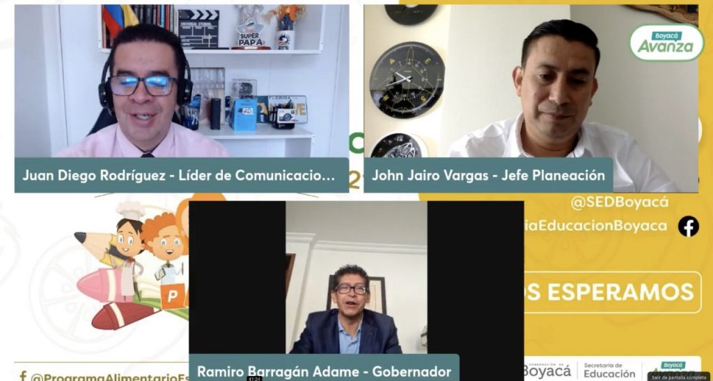 “Desde el primer día de calendario académico, 30 de enero de 2022, la Gobernación de Boyacá tiene garantizado el suministro de la alimentación escolar, con su programa -PAE- para los estudiantes de las 254 instituciones educativas publicas del departamento”, según lo anunció el gobernador de Boyacá, Ramiro Barragán Adame, durante la segunda Mesa Pública de este programa, que se llevó a cabo en forma virtual, este 2 de diciembre, por las redes sociales de la Gobernación de Boyacá y la Secretaría de Educación.