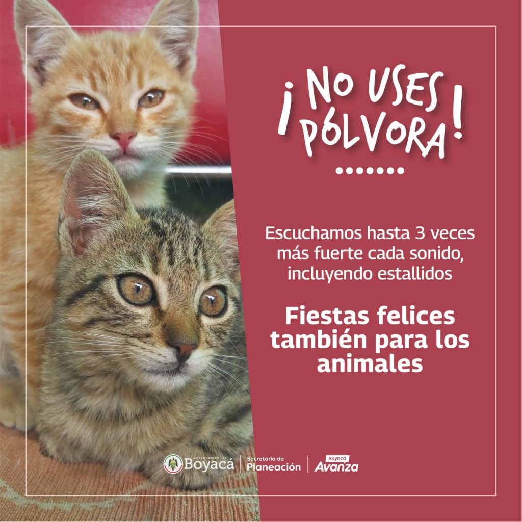 Finalmente, la Secretaría de Planeación contribuye con la campaña denominada "Fiestas felices también para los animales" , que ha empezado en redes sociales, junto al #NoUsesPólvora, en concordancia con sus apuestas por un futuro posible, mediante las estrategias de Ciencia, Tecnología e Innovación Boyacá BIO y Boyacá Agro.