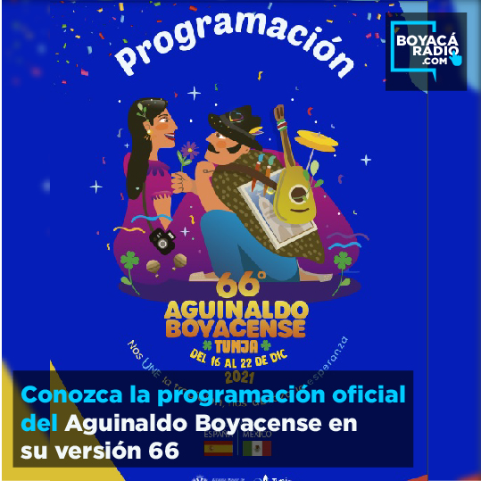 La alcaldía de Tunja a través de sus redes sociales, dio a conocer la programación oficial del Aguinaldo Boyacense en su versión número 66, teatro, música, arte deporte y cultura acompañaran a los tunjanos y demás asistentes en los más de 8 días de la fiesta grande de Tunja para Colombia y el mundo.