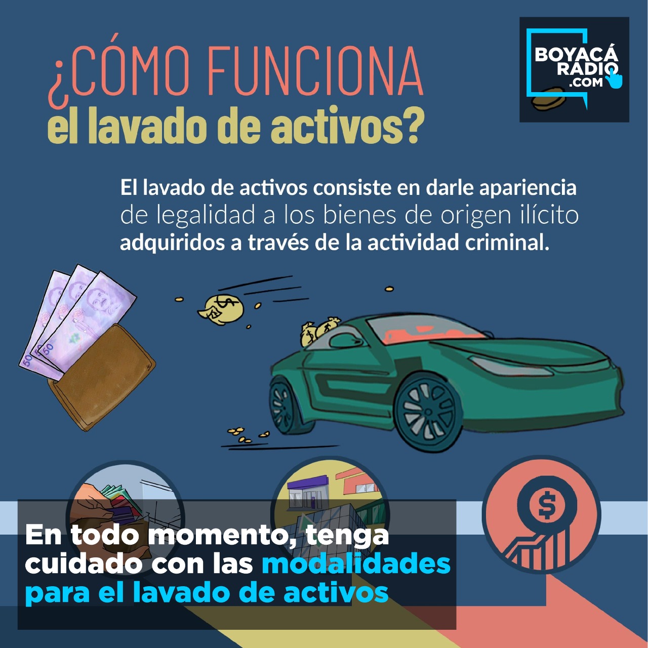 En todo momento, tenga cuidado con las modalidades para el lavado de activos