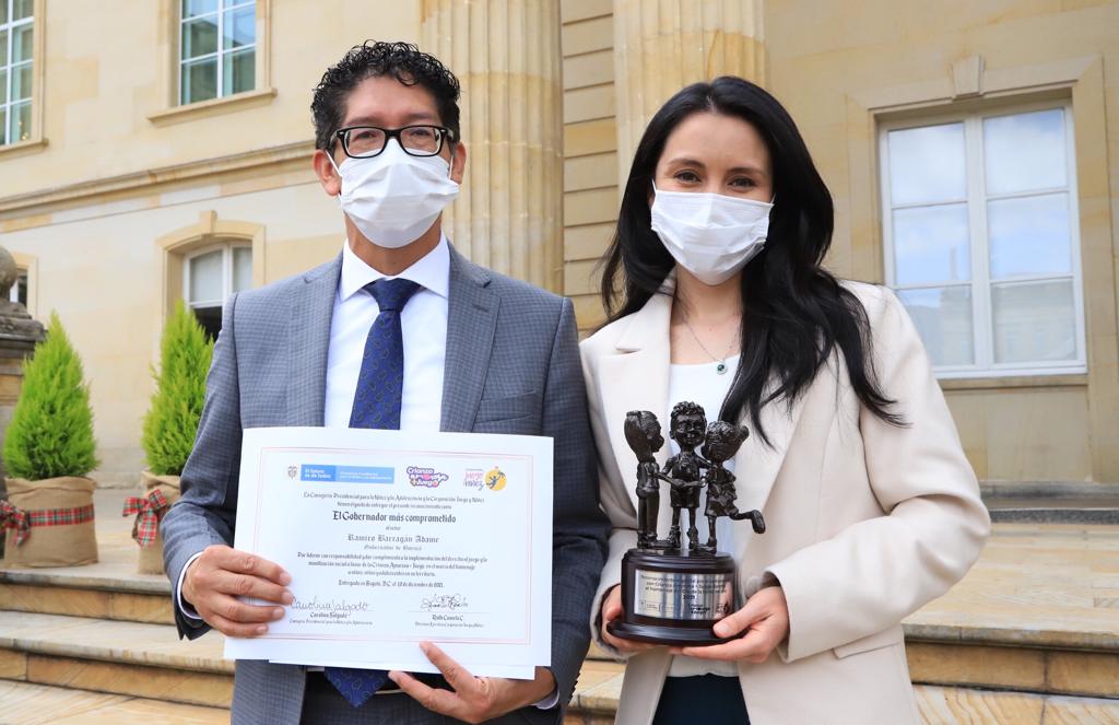 En la Casa de Nariño de Bogotá, el mandatario departamental fue destacado por su gestión y trabajo en pro de las niñas, niños y adolescentes boyacenses.