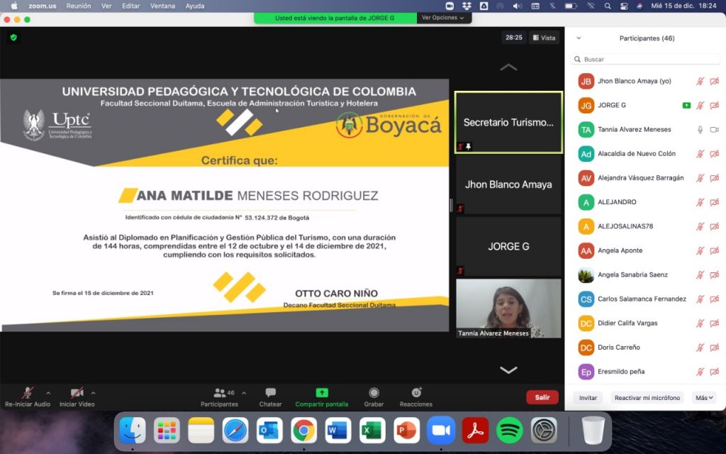 En total, 44 personas de diferentes provincias, cursaron este diplomado y profundizaron sus aprendizajes en temas como: emergencia sanitaria y su impacto en la gestión del turismo; la influencia de las TIC en la actividad turística; destinos turísticos inteligentes; cooperación y gobernanza; gestión de los espacios turísticos y modelos de planificación turística.