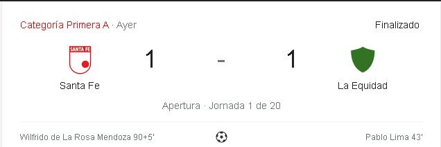 Por otro lado Santa Fe y Equidad empataron en un juego que permitió a las dos escuadras repartir un punto que no está mal en el inicio del campeonato