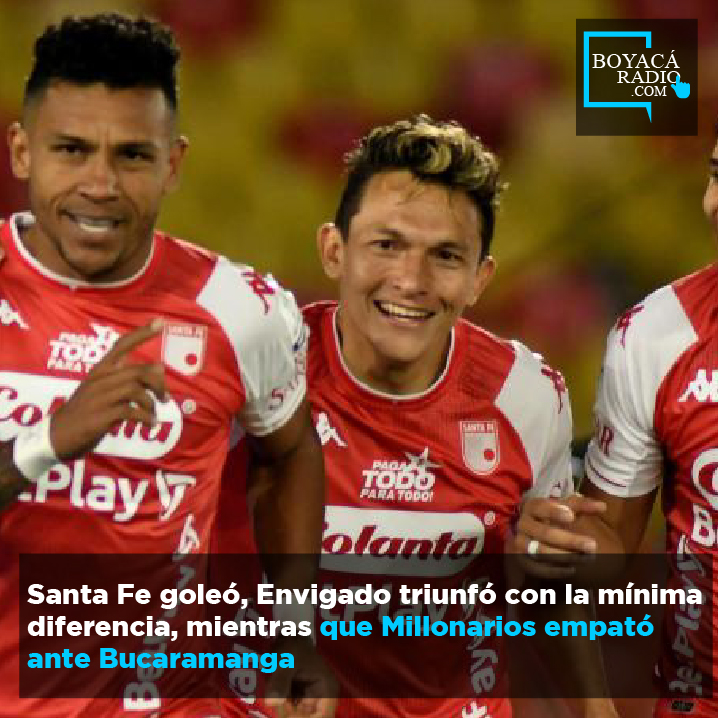 Independiente Santa Fe goleó a Agilas 3-0 con un gran juego que le perite al conjunto capitalino llegar a 4 puntos, Millonarios y Bucaramanga dejaron ver un juego poco entretenido con un empate 0-0 Envigado con un hombre menos ganó en el Polideportivo sura Deportivo Pasto que acumula su segunda derrota.