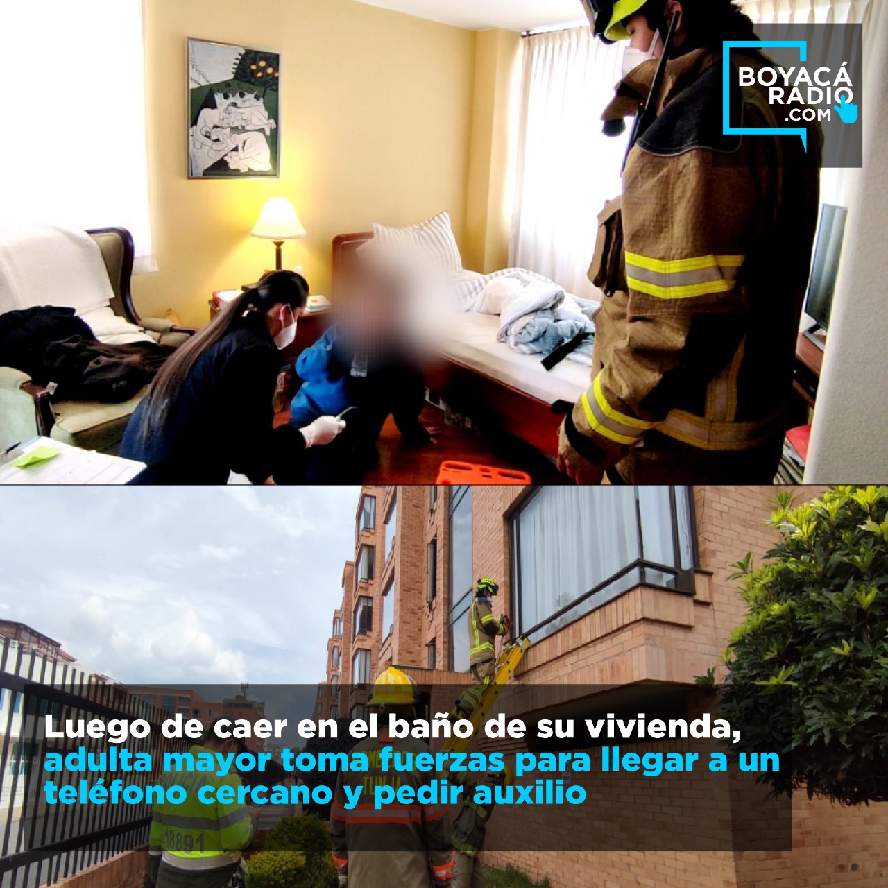 Bomberos Voluntarios de Tunja, con acompañamiento de la Policía Metropolitana atienden emergencia ingresando a una vivienda en donde se encontraba una valiente mujer que aguanto el dolor y resistió para pedir ayuda luego de caer y sufrir un fuerte golpe