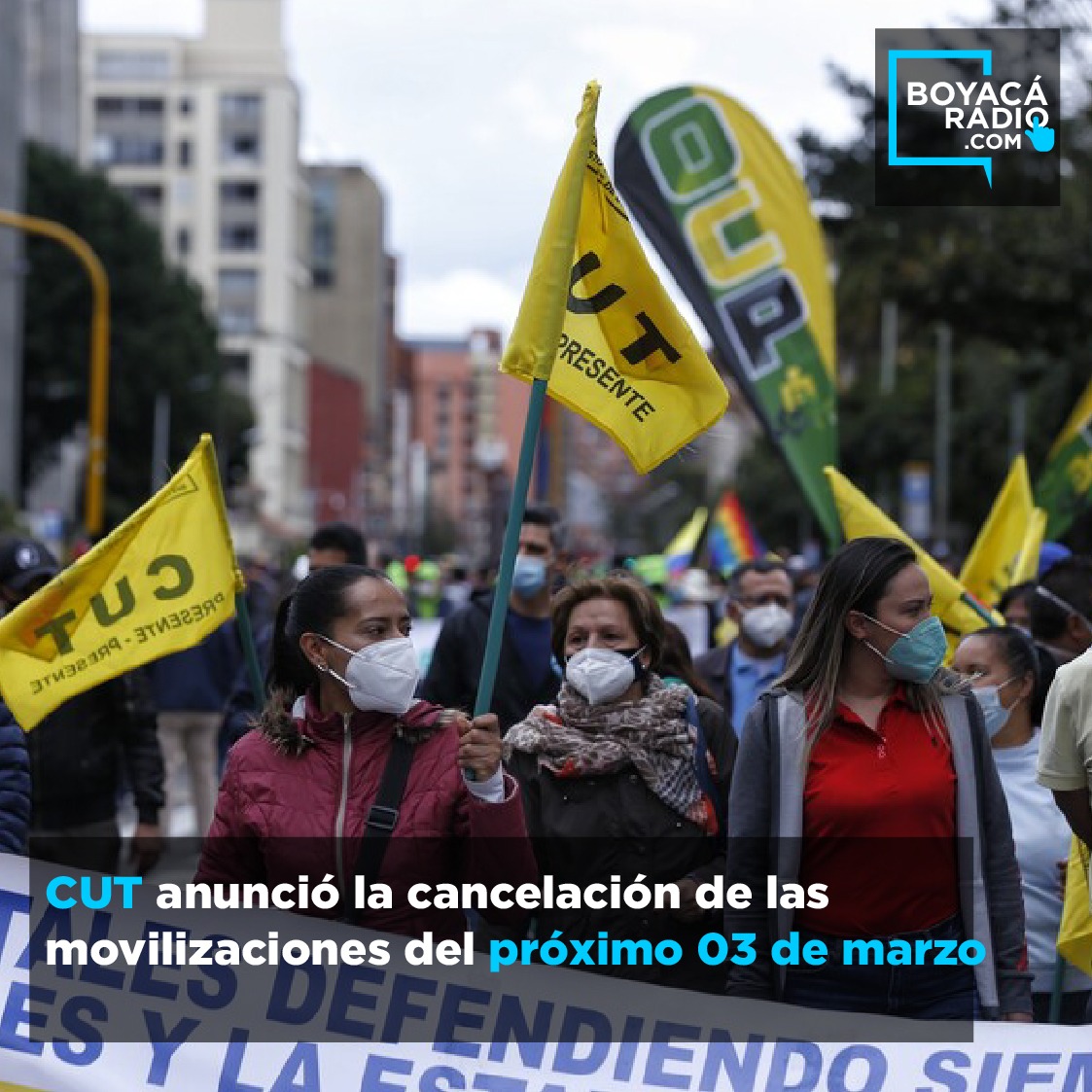 El Comité de Paro y la Central Unitaria de Trabajadores (CUT), había anunciado las nuevas fechas de paro para el 2022, la primera de ellas era para este 03 de marzo, una marcha pacífica, sin embargo este 24 de febrero la CUT anunció la cancelación de la convocatoria teniendo en cuenta la falta de garantías del Estado para salir a las calles.