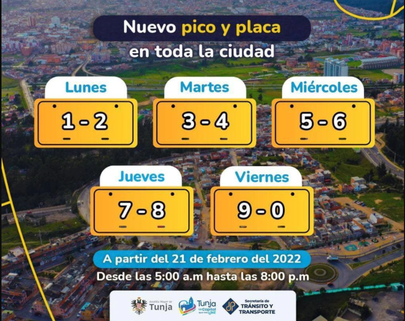 La restricción del pico y placa en Tunja aplica para los taxis que terminen en placas 3-4 los vehículos particulares que terminen en placas 9-0 (de 5 a.m.