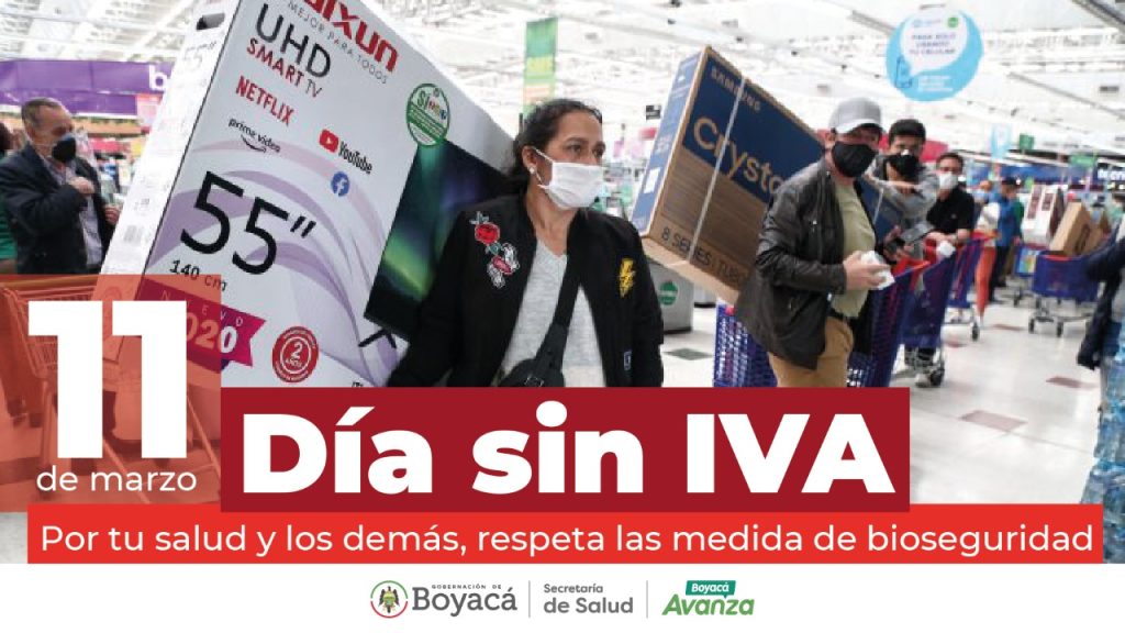 Con motivo del Día sin IVA, programado por el Gobierno Nacional, para este viernes 11 de marzo, en el cual los consumidores podrán adquirir productos sin tener que pagar el Impuesto al valor agregado, IVA, la Secretaría de Salud de Boyacá hace un llamado para cumplir con todos los protocolos y las medidas de bioseguridad.