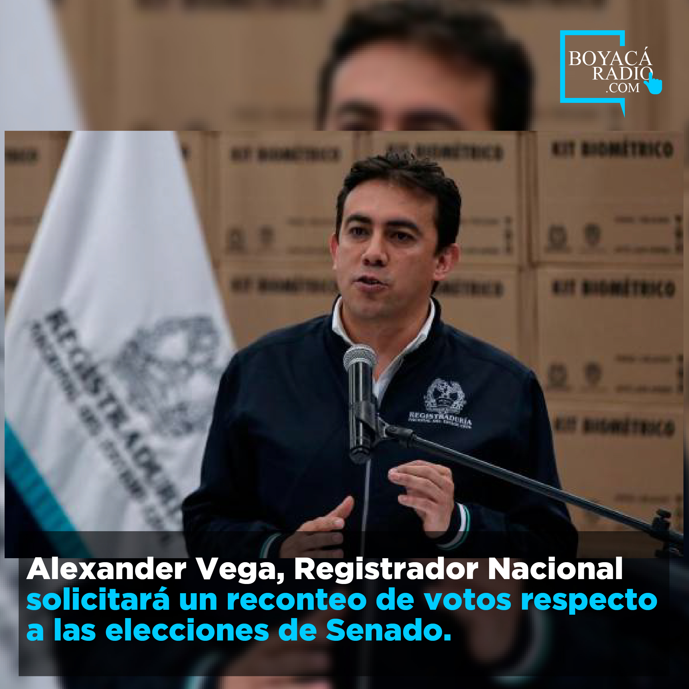 El Registrador Nacional Alexander Vega informó este lunes que solicitará al Consejo Nacional Electoral (CNE) un reconteo de las mesas de votación en todos los municipios de Colombia para las elecciones a Senado, celebradas el pasado 13 de marzo de 2022.