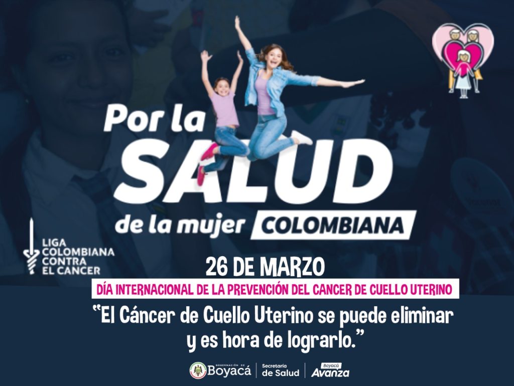Por esto, la Secretaría de Salud de Boyacá en articulación con la Liga Colombiana contra el Cáncer, se une a la conmemoración del Día Mundial de la Prevención del Cáncer de Cuello Uterino, este 26 de marzo, e invita a todos los actores en salud a tener en cuenta que, junto con la vacunación contra el Virus del Papiloma Humano, VPH, la detección y el tratamiento de las lesiones precancerosas son estrategias que pueden prevenir nuevos casos y muertes.