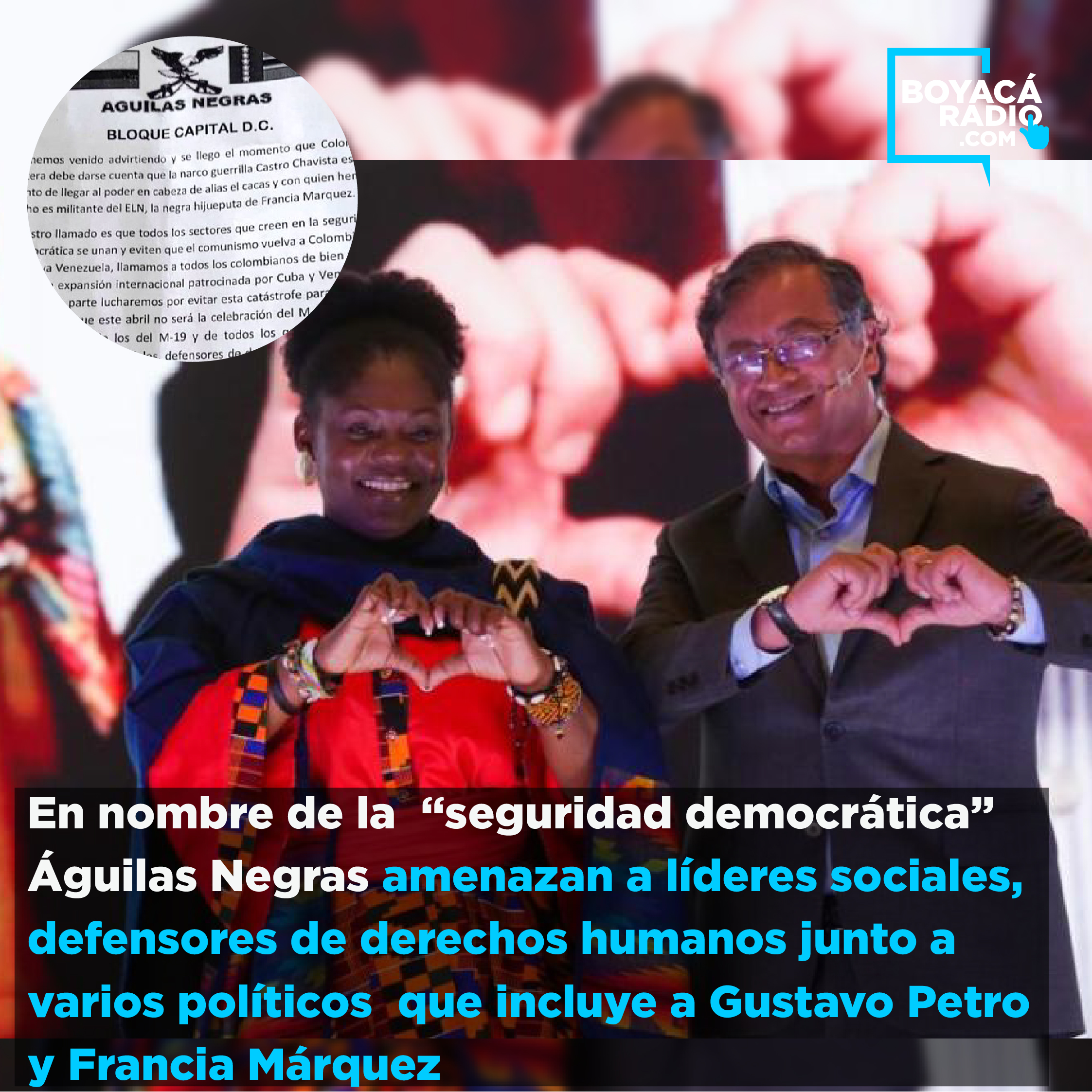 Es la tercer amenaza que recibo en menos de un mes, también amenazaron a nuestra fórmula vicepresidencial @petrogustavo. Nos quieren imponer el terror en Colombia.