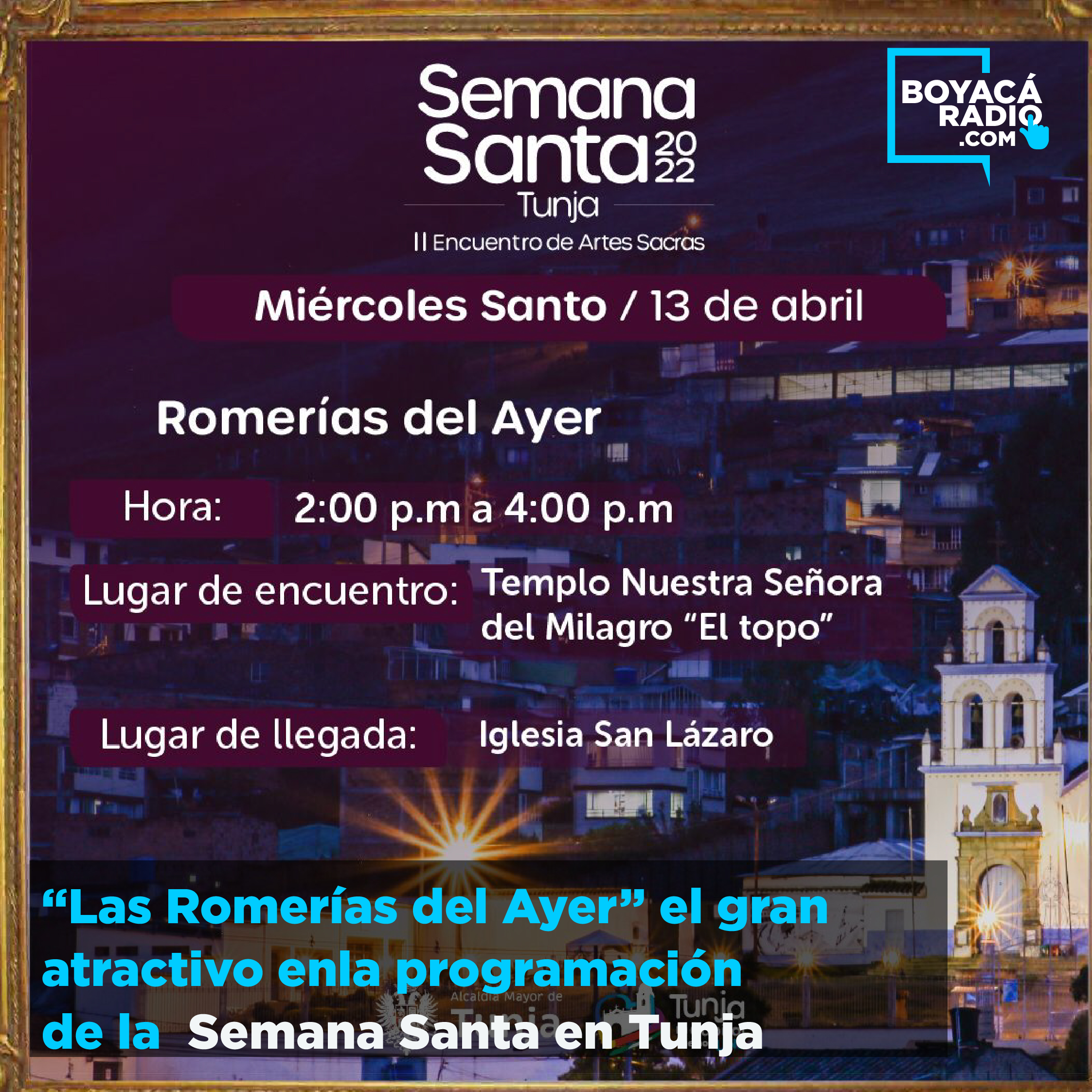 Para este miércoles 13 de abril la Alcaldía Mayor de Tunja y la Secretaria de Cultura y Turismo hemos previsto la realización de una novedosa jornada denominada “Las Romerías del Ayer”.