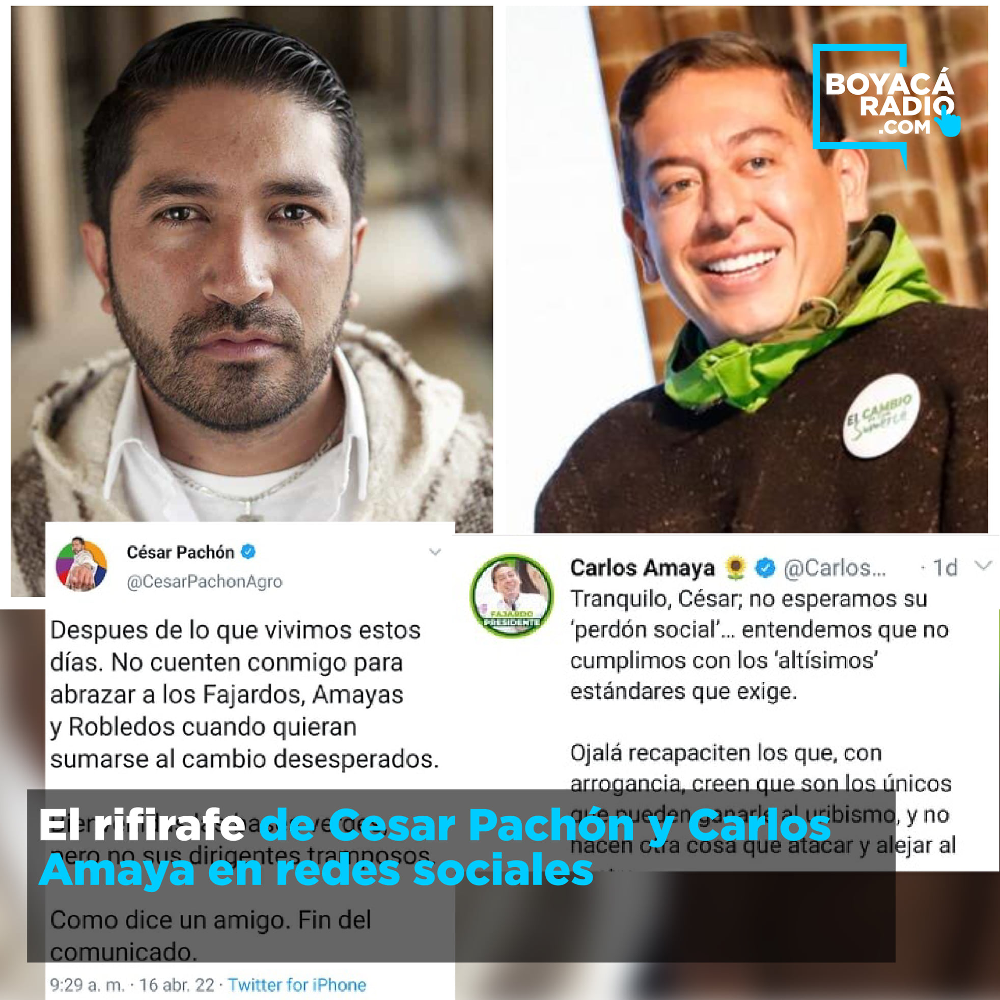 A través de redes sociales dos líderes políticos oriundos de Boyacá, dieron a conocer sus posturas respecto a varias opiniones que se habrían realizado sobre a las elecciones presidenciales. El Representante a la Cámara y ahora Senador del pacto Histórico, Cesar Pachón, dio a conocer su postura respecto a la publicacion que hizo Carlos Amaya en donde el ex gobernador habla sobre la polémica propuesta del perdón Social, hablando también de no tragar Sapos; para Pachón la publicacion no fue muy bien recibida por lo que su respuesta no se hizo esperar. A lo escrito por el líder del partido Verde, el Representante dijo, que no estaría dispuesto a tener un abrazo con algunos políticos cuando deseen estar en lo que el considera es el cambio. Ante la respuesta de Pachón Amaya lanzó un trino en el que dice lo siguiente: Tranquilo, César; no esperamos su ‘perdón social’… entendemos que no cumplimos con los ‘altísimos’ estándares que exige.