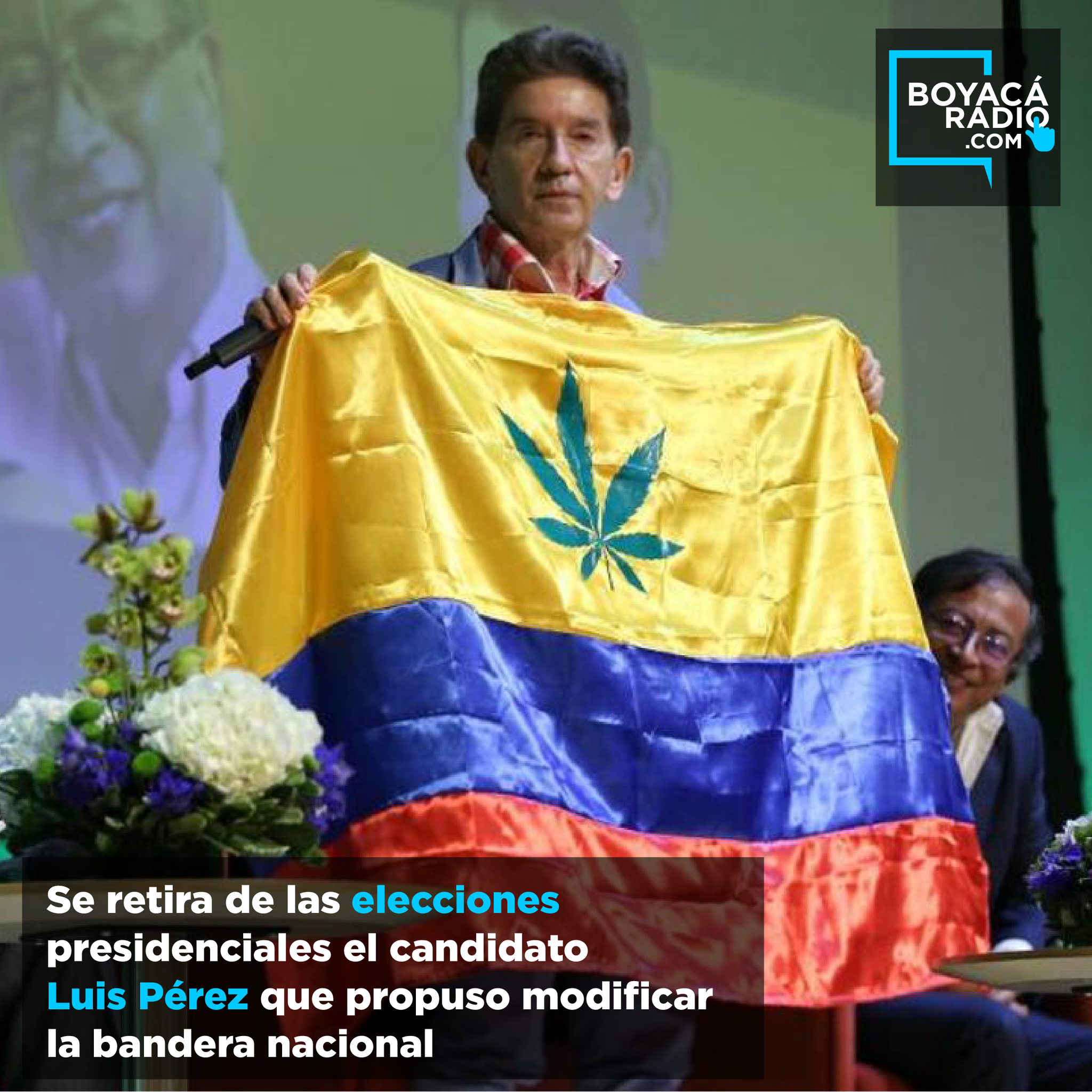 El exgobernador del departamento de Antioquia Luis Pérez retiró su candidatura a las elecciones presidenciales del próximo 29 de mayo de Colombia, pues sus posibilidades de ganar eran casi nulas y teniendo en cuenta el rechazo existente hacía sus propuestas de centro.