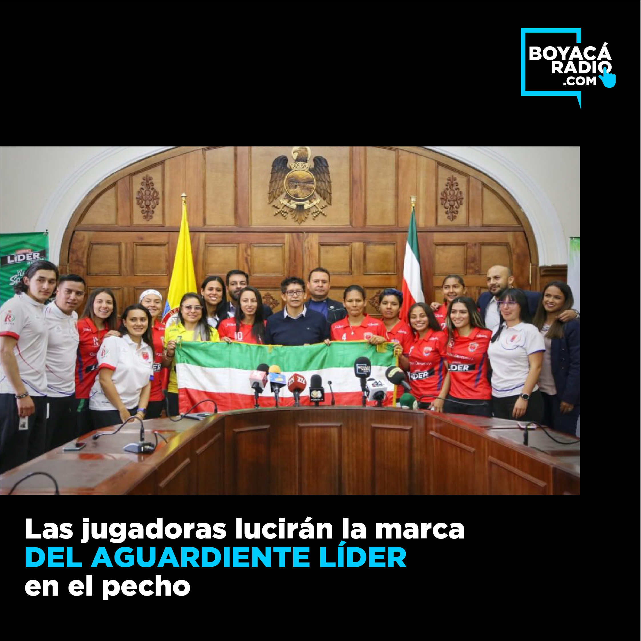 El equipo lucirá las camisetas de la Nueva Licorera de Boyacá (NLB) con la marca Aguardiente Líder, en Cochabamba, Bolívia, como parte de los esfuerzos que adelanta la Gobernación de Boyacá en temas de equidad de género, inclusión y empoderamiento a la mujer.