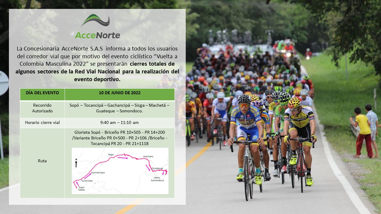 Tenga en cuenta los cierres viales para este 10 de junio por la octava etapa de la Vuelta a Colombia