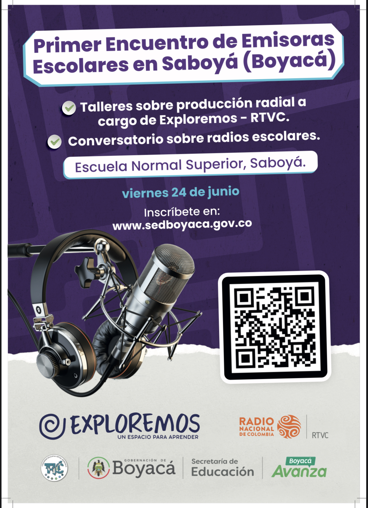 La Secretaría de Educación de Boyacá y su Programa TIC invitan a participar, en el I Encuentro Presencial de Emisoras Escolares 2022, que se realizará en Institución Educativa “Escuela Normal Superior” de Saboyá, el 24 de junio de 2022, a partir de las 8:00 de la mañana.