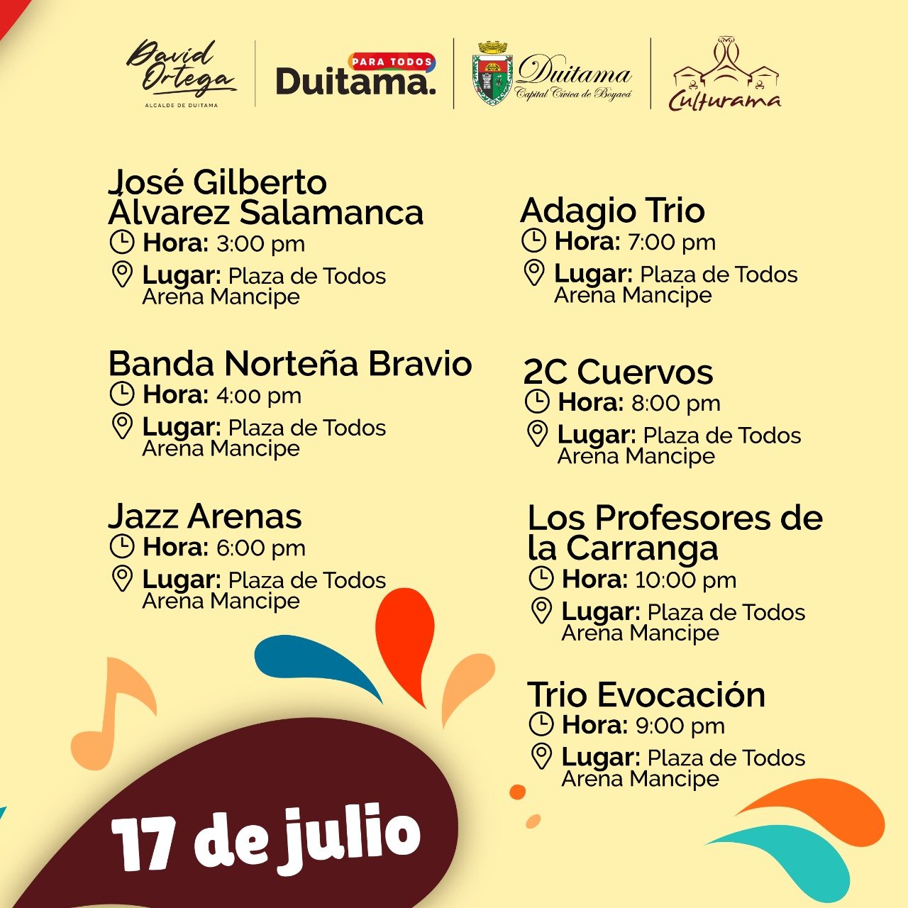Para formalizar la apertura, este 08 de julio se dará inicio al Primer Festival Plaza de Todos en Duitama, con más de 60 artistas, 60 géneros, durante dos fines de semana.