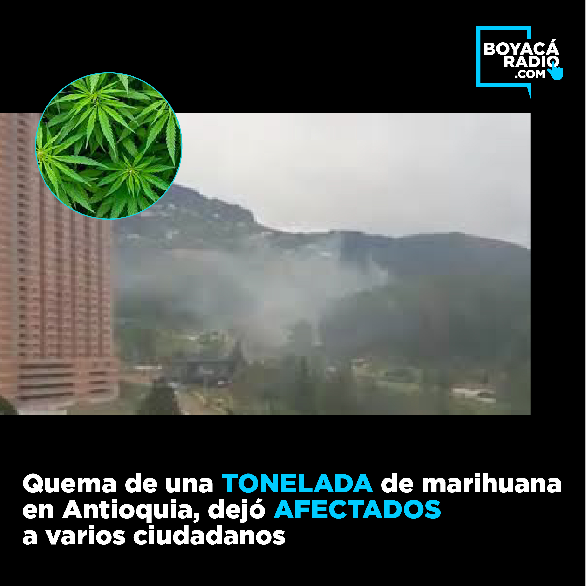 Aunque inicialmente creían que se trataba de un incendio, los alertó el peculiar olor a marihuana. La Alcaldía de Bello desmintió el incendio y confirmó que se trataba de una quema llevada a cabo por la Policía, el Ejército, los Bomberos y la Fiscalía, quienes estaban concluyendo un operativo en el que incautaron 1.678 kilos de marihuana.