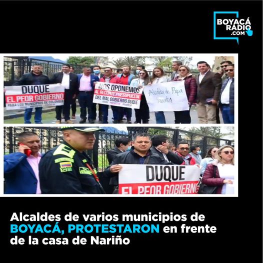 Fueron varios los alcaldes que se trasladaron hasta Bogotá, con el fin de hacer una manifestación por malos manejos de la administración Duque, que según ellos afectan a varios municipios del departamento de Boyacá, dentro de las exigencias realizadas, se solicitó al presidente, que cumpla los compromisos con los municipios de cuarta, quinta y sexta categoría que tenía que ver con los recursos del Sistema General de Participación.