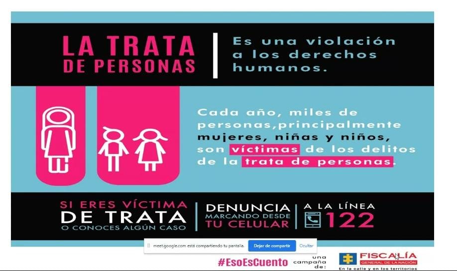 La Fiscalía explicó que la trata de personas se da cuando un individuo o un grupo organizado, captan hombres y mujeres, los trasladan, acogen o reciben, con el ánimo de explotarlos, ya sea con fines sexuales, para trabajo forzado, mendicidad o extracción de órganos.
