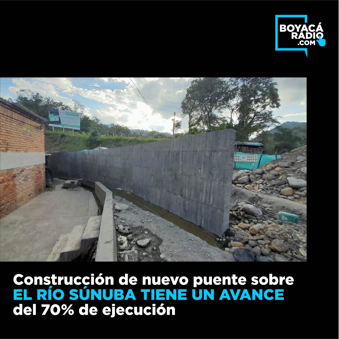 La obra que permitirá recuperar la movilidad vial entre Guateque y Guayatá, ya cuenta con los estribos del lado oriental listos para recibir la superestructura que soportará el tablero o piso y que también está en el lugar.