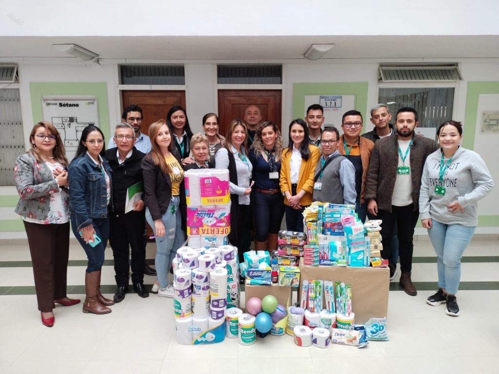 En la Plazoleta del Escudo en el Palacio de la Torre en Tunja se dieron cita los equipos de trabajo de las diferentes secretarías y direcciones para entregar jabón de cuerpo, shampoo, toallas higiénicas, crema y cepillos dentales, entre otros elementos.