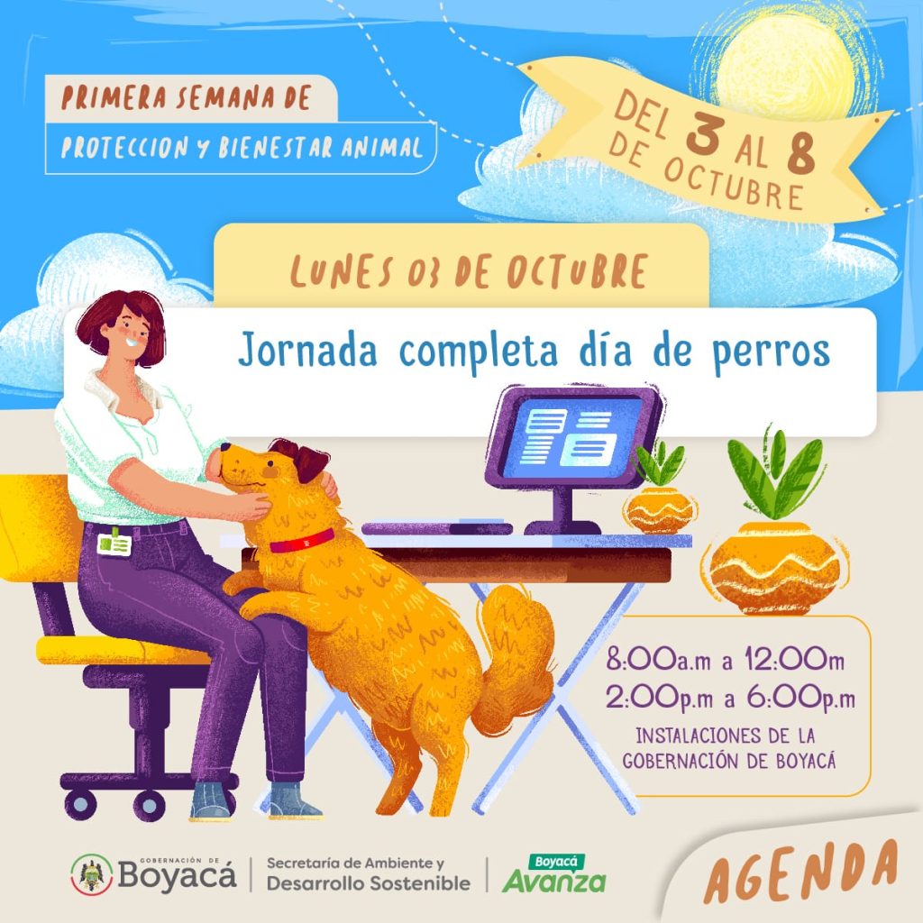 La semana iniciará el lunes 3 con una actividad denominada “Día de Perros”, en donde funcionarios y contratistas de la Gobernación de Boyacá tendrán la posibilidad de llevar a su perro a la oficina.