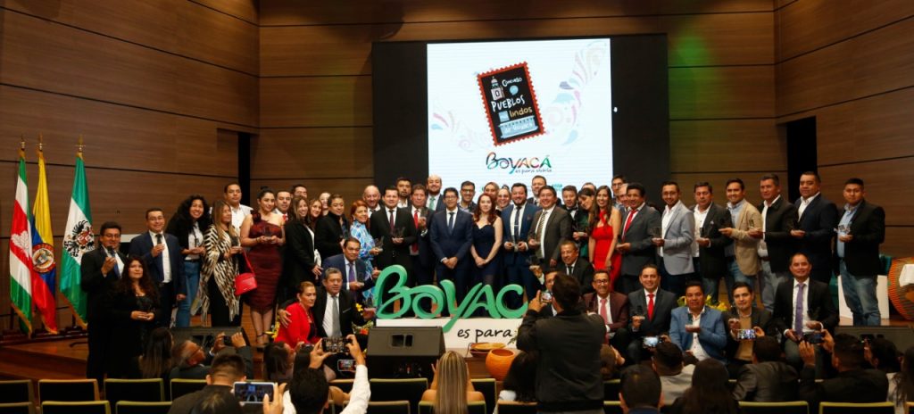 Durante la ceremonia, el gobernador Ramiro Barragán Adame y la secretaria de Turismo, Laura Andrea Bello, recibieron a alcaldes, alcaldesas, enlaces de turismo y delegados de los municipios que participan en el concurso 'Los pueblos más lindos de Boyacá'.