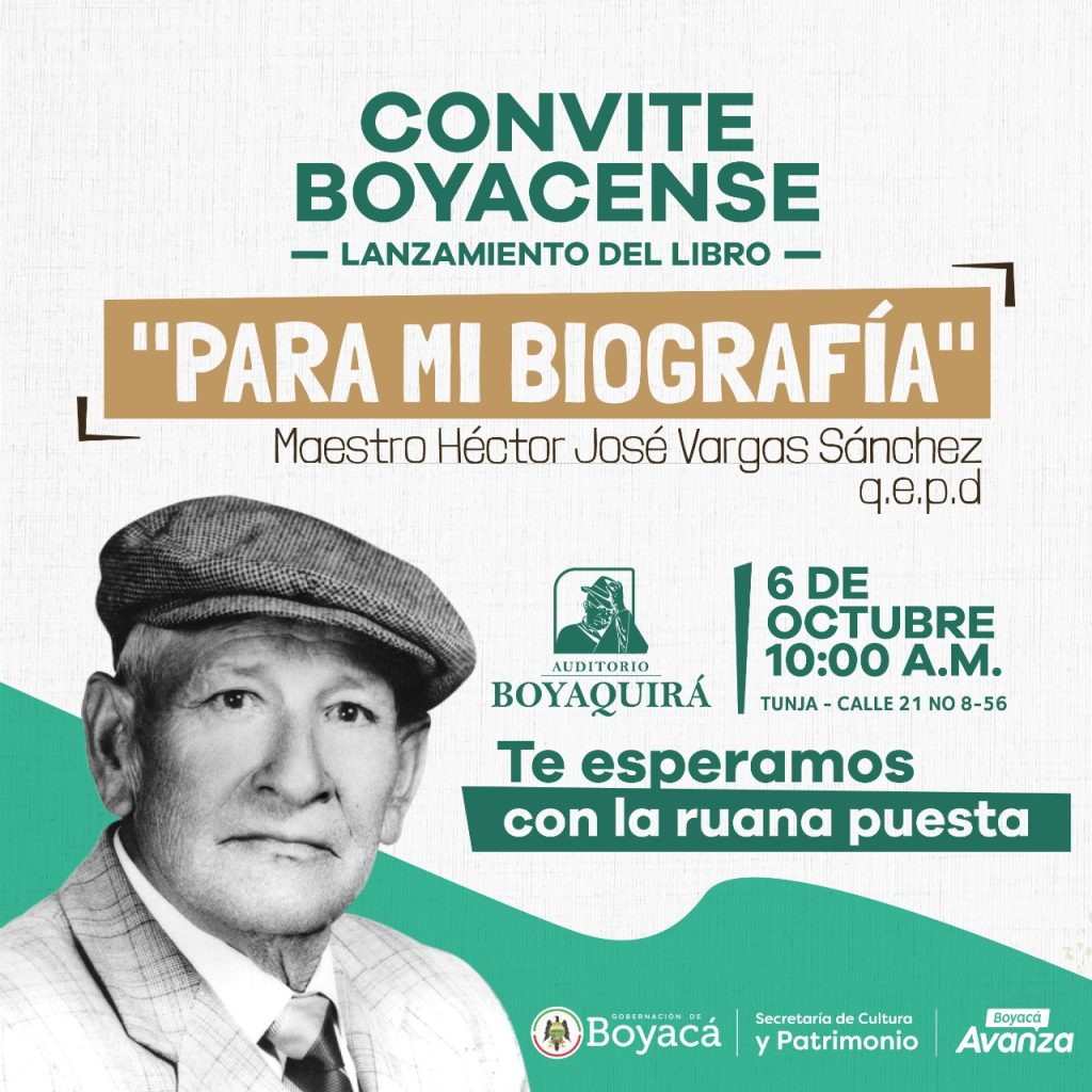 Con el compendio de más de un centenar de obras musicales, poesía y diferentes escritos, se presentará ante los asistentes “Para mi Biografía”, obra fruto de la investigación de la familia del autor del Himno Popular de Boyacá: “Soy Boyacense”, el maestro Héctor José Vargas Sánchez (QEPD).