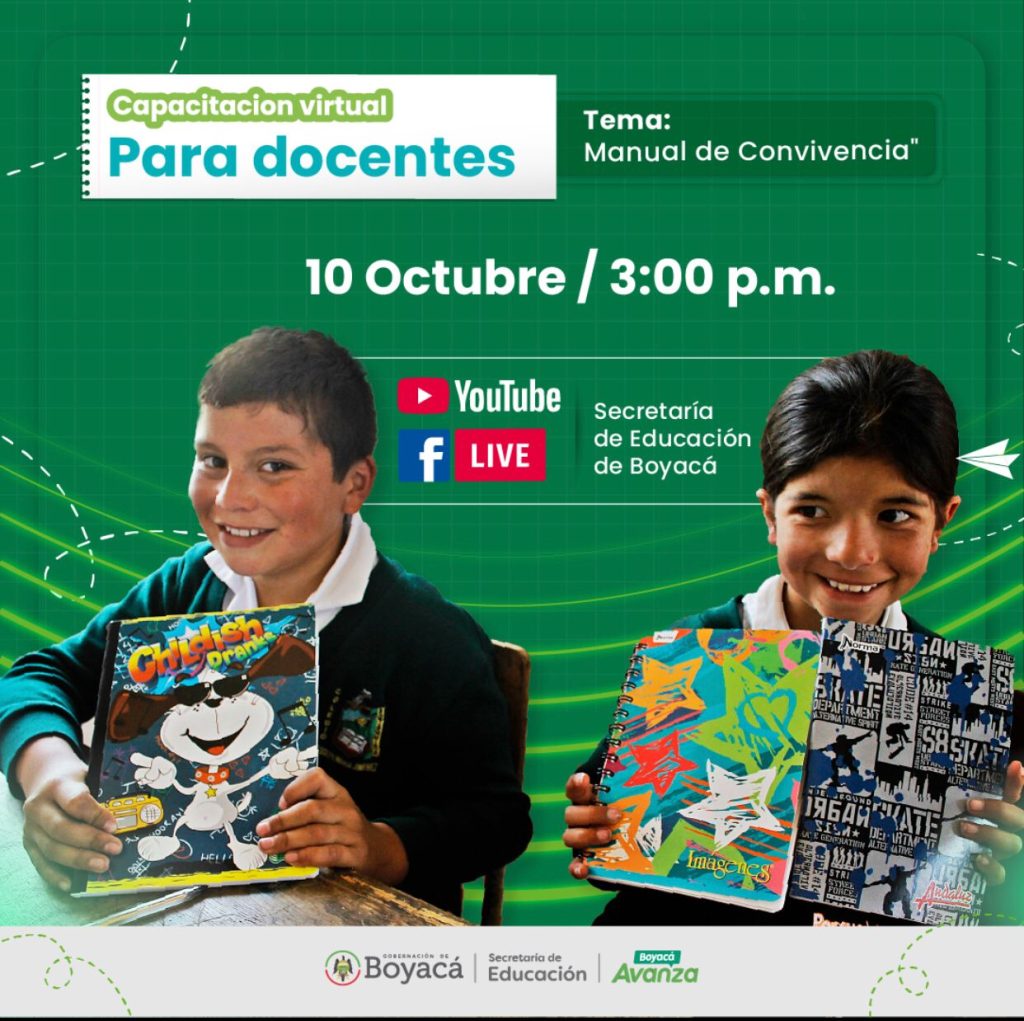 10 de octubre 2022 3:00 pm Capacitación virtual para Directivos Docentes Tema “Manual de convivencia” Transmisión en redes de la Secretaría de Educación de Boyacá Mercedes del Rosario Najar Castro Inspección y Vigilancia