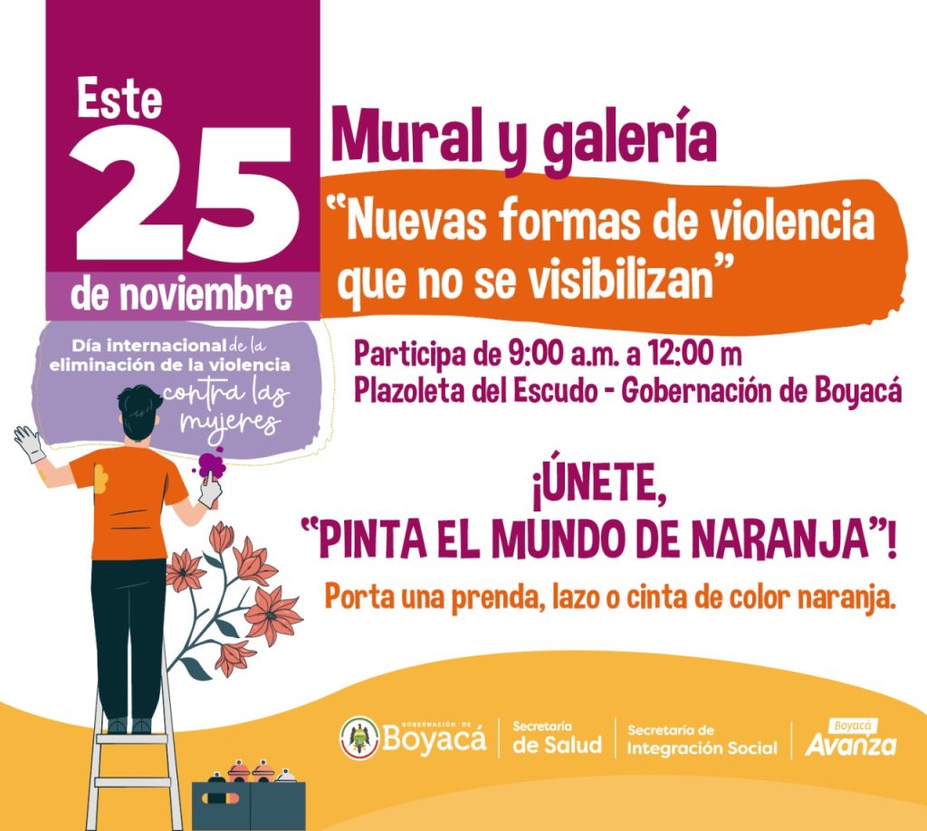 “Este viernes vamos a estar en la Plazoleta del Escudo de la Gobernación de Boyacá, a partir de las 9:00 de la mañana, realizando un mural - galería que hemos denominado “nuevas formas de violencia que no se visibilizan’, para conmemorar esta importante fecha”, puntualizó.
