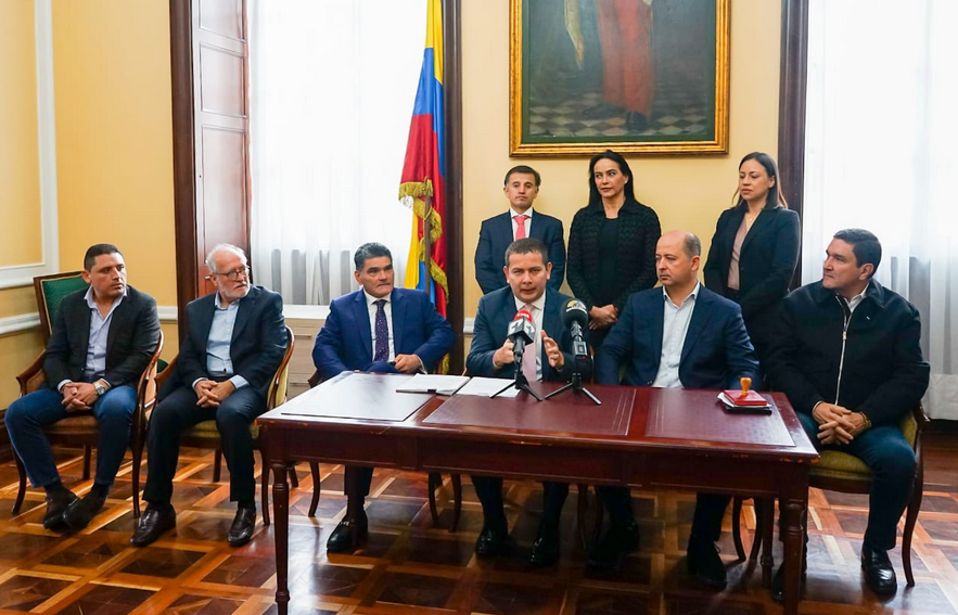 El Alcalde de Tunja, Alejandro Fúneme, acompañado del presidente de la Asociación Colombiana de Capitales -Juan Carlos Cárdenas-, de la Directora Ejecutiva de la organización -Luz María Zapata- y la bancada de Ciudades de Calidad radicaron un proyecto de ley en el Congreso de la República para gestionar que los residuos sólidos puedan ser impulsados a la economía circular en el país.