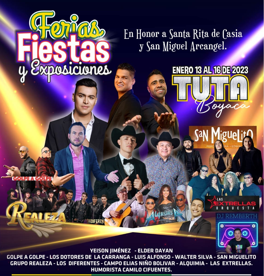 Del 13 al 16 de enero se llevarán a cabo en el municipio de Tuta Boyacá, las tradicionales ferias y fiestas en honor a Santa Rita de Casia y San Miguel Arcángel.