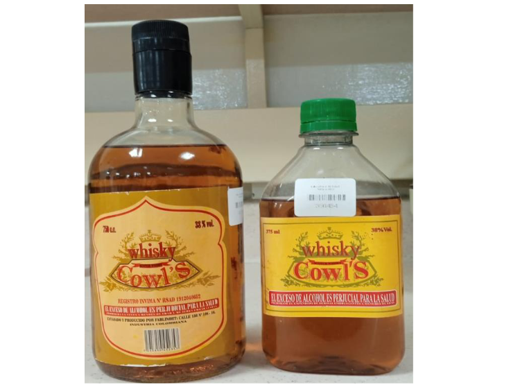 El Instituto Nacional de Vigilancia de Medicamentos y Alimentos denunció que la bebida denominada “Whisky COWL’S”, que actualmente está siendo comercializada en el mercado colombiano, no cuenta con la autorización sanitaria de elaboración, envasado y comercialización.