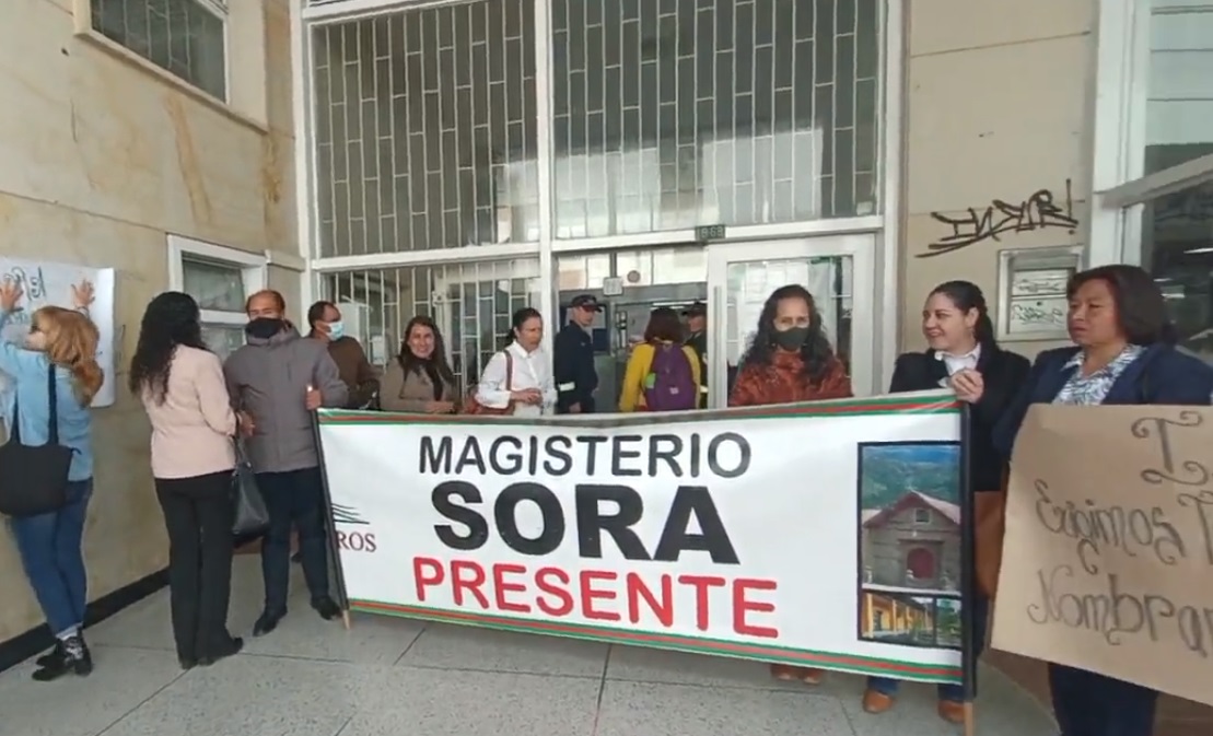 Son varios maestros y padres de familia de la Institución Educativa de Sora (Boyacá), los que se reunieron en frente de la sede principal de la Secretaría de Educación en Tunja, para protestar por las demoras en la contratación de una secretaria y una pagadora.