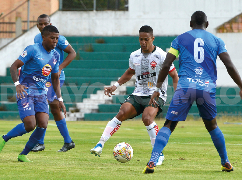 El único gol del compromiso fue hecho por Jhojan Nieva, quien -libre de marca- logró llegar a la medialuna del área solo y disparar sin oposición al arco defendido por el arquero de la escuadra boyacense, Alejandro Amaya.