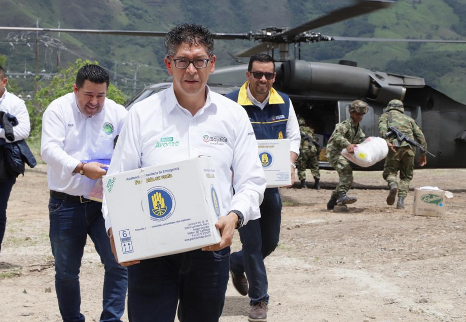 Hasta el municipio de Paya, llegó el Gobernador de Boyacá Ramiro Barragán Adame junto a la Unidad Nacional para la Gestión del Riesgo y Desastres, la Unidad de Gestión del Riesgo de Desastres de Boyacá, la Fuerza Área Colombiana, el Grupo Aéreo de Casanare y la Alcaldía de Paya, para entregar ayudas humanitarias a las familias damnificadas por el deslizamiento en la vereda Sabaneta.